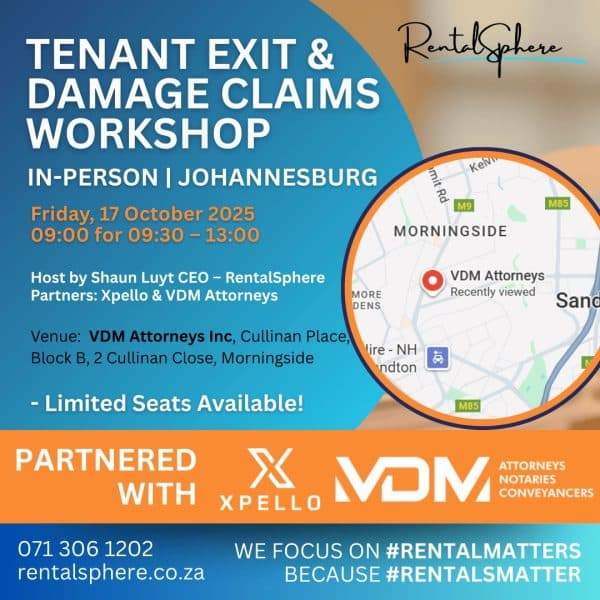 In this practical, in-person workshop, Shaun Luyt, CEO of RentalSphere, will walk you through the 📋 Best Practice Exit Process Blueprint — a clear, step-by-step system for legally compliant ✅, conflict-free 🤝 lease terminations. You’ll discover how to manage every stage of the process with confidence, from notice 📢 to inspection 🕵️♂️ to deposit refund 💰.